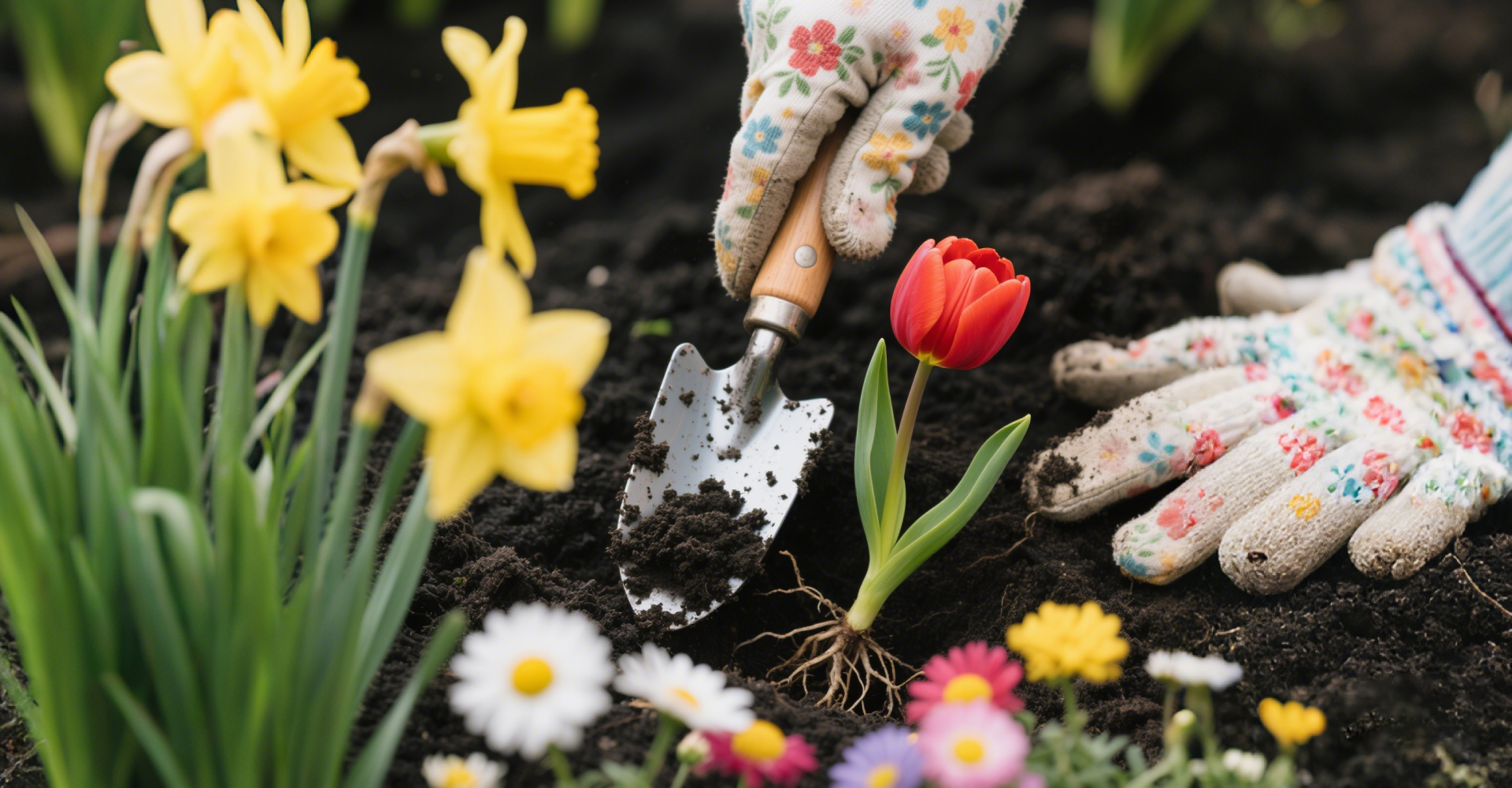 花色手套握鏟,輕啟沃土植春光 —— 小鏟子護你栽下每一份浪漫生機!